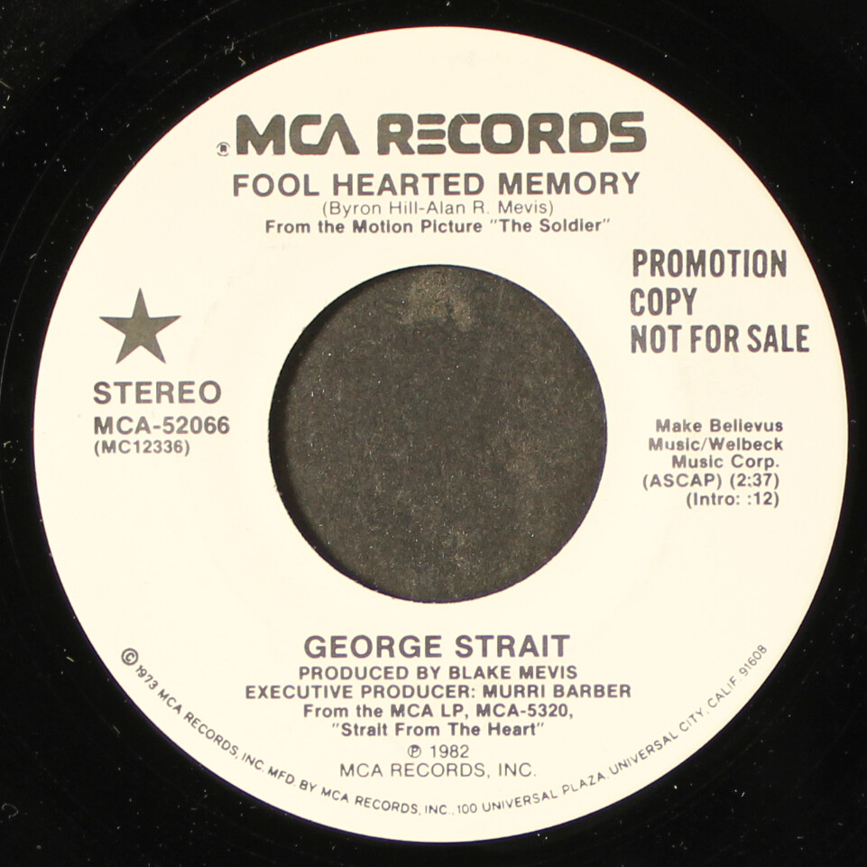 “Fool Hearted Memory” is a classic country track written by Byron Hill and Blake Mevis, recorded by George Strait as the lead single from his second studio album, Strait from the Heart. The album was released in June 1982 by MCA Records. Produced by Blake Mevis, the song features prominent fiddle work and Strait’s early neotraditional style, running 2 minutes and 39 seconds.